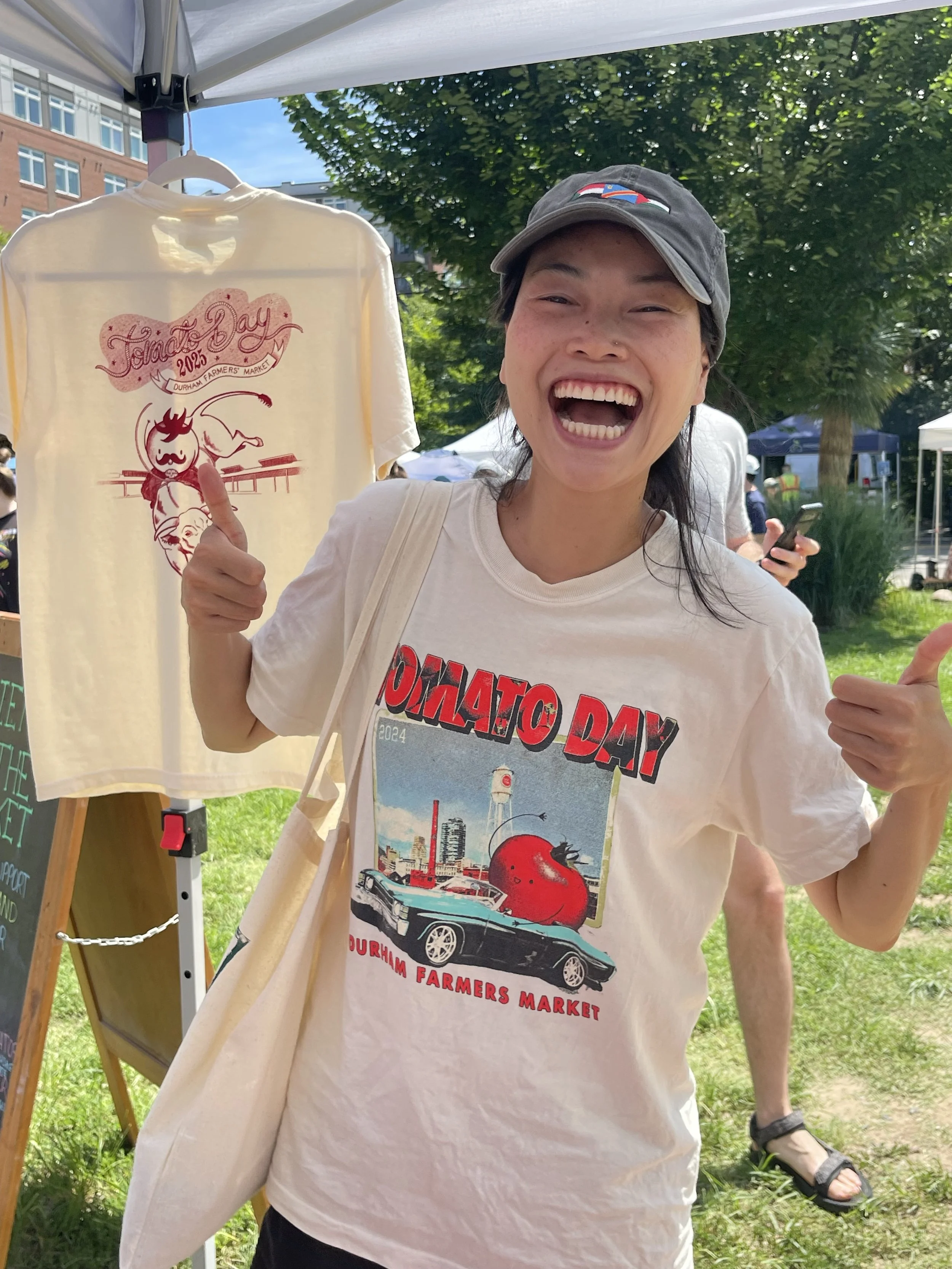 Through collaborative feedback with Durham Farmers’ Market Manager Kaitlyn Breedlove and the DFM team, paired with my design recommendations, we selected and printed two final shirt designs."