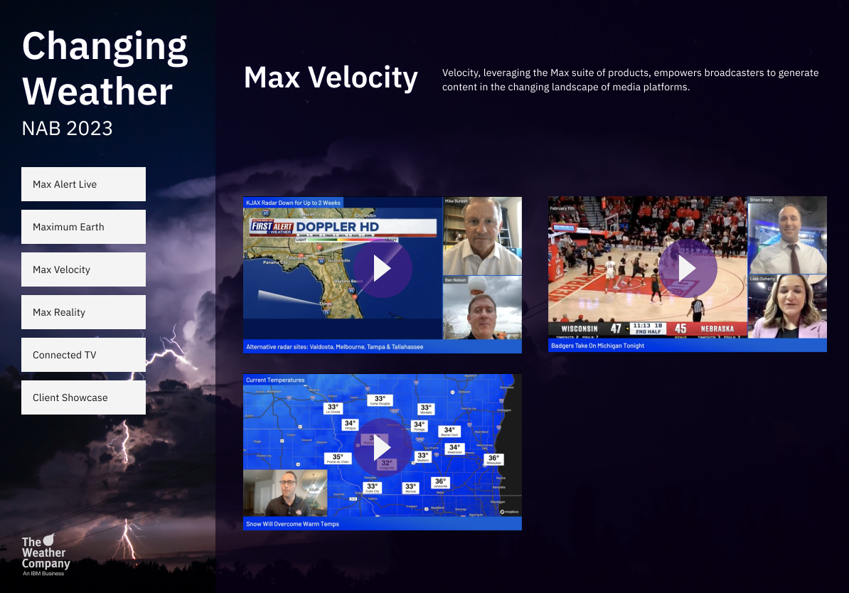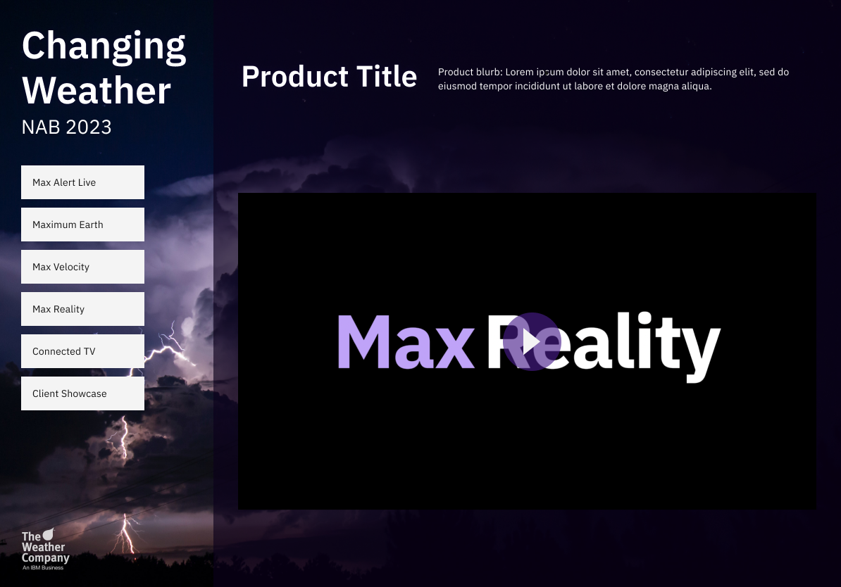 In my role at The Weather Company, I primarily supported the B2B division of Media and Broadcast. 3 weeks before the National Association of Broadcasters annual trade show, it came to my attention that the kiosk interface had been given a once over to match the caliber of products being presented.